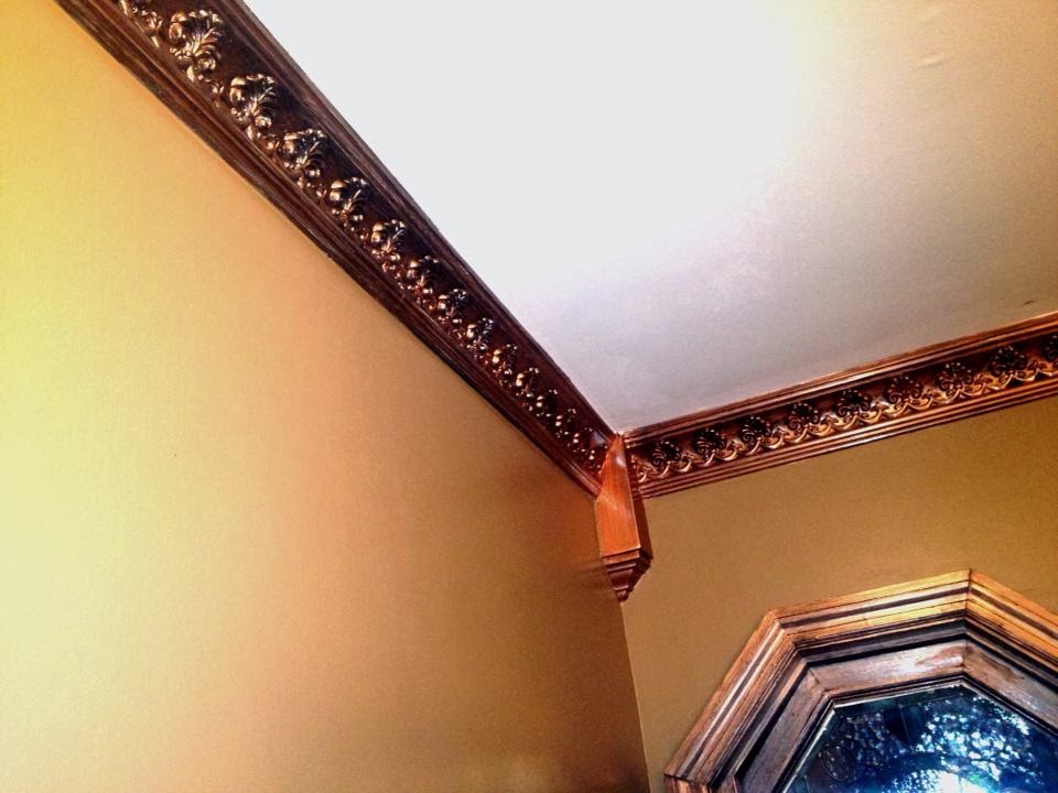 Seeing that my walls were freshly painted brown, I figured a beautiful bronze antique paint job on my crown molding would really snap it to life.